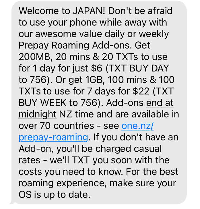 1. My paid roaming plan kept dropping. I’d paid for a week-long data package from my NZ carrier, but for some reason, it barely connected in Tokyo. When it did work, it would drop within minutes.
